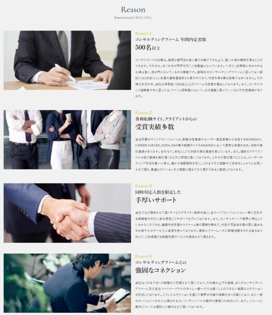 限られた時間でコンサルタント等のハイキャリアを目指す方にはとてもよい転職エージェントだと思います。