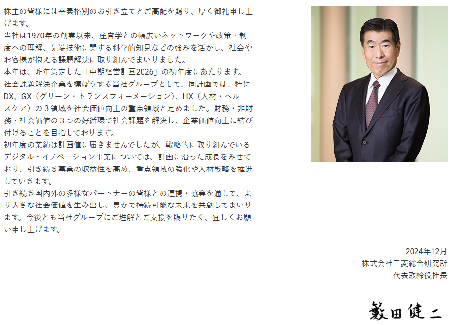 三菱総合研究所は2025年において、中期経営計画2026のもと、DX・GX・HXの3重点領域での社会価値創出を最重要戦略として位置づけています。
